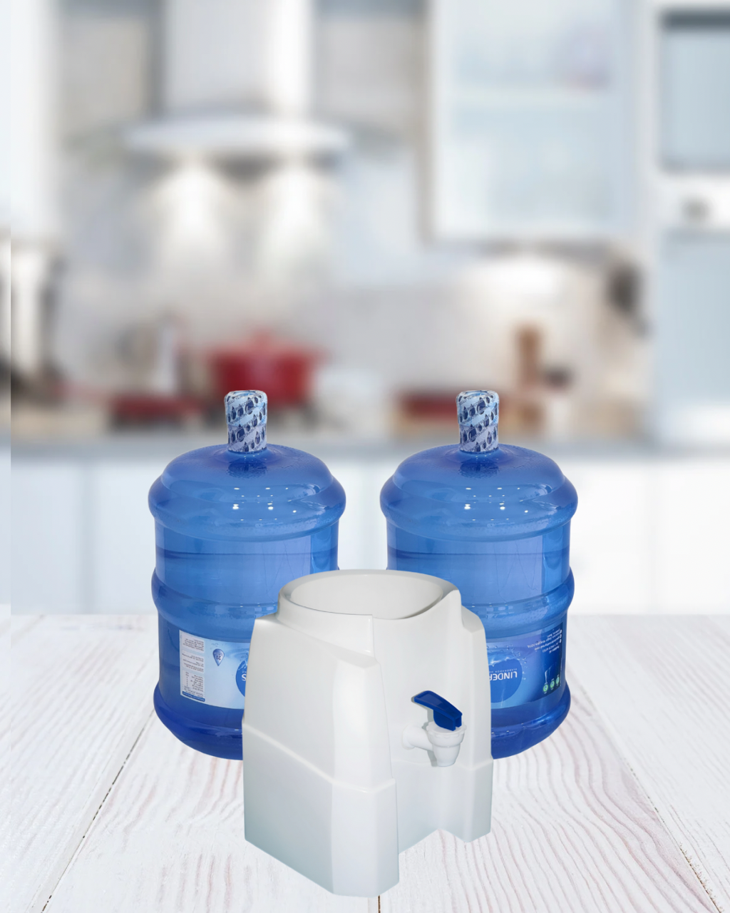 Pack inicial Básico que incluye 2 bidones (2 envases de 20 litros)+ 2 recargas de 20 lts (total 40 lts) + 1 dispensador de agua básico color blanco.
