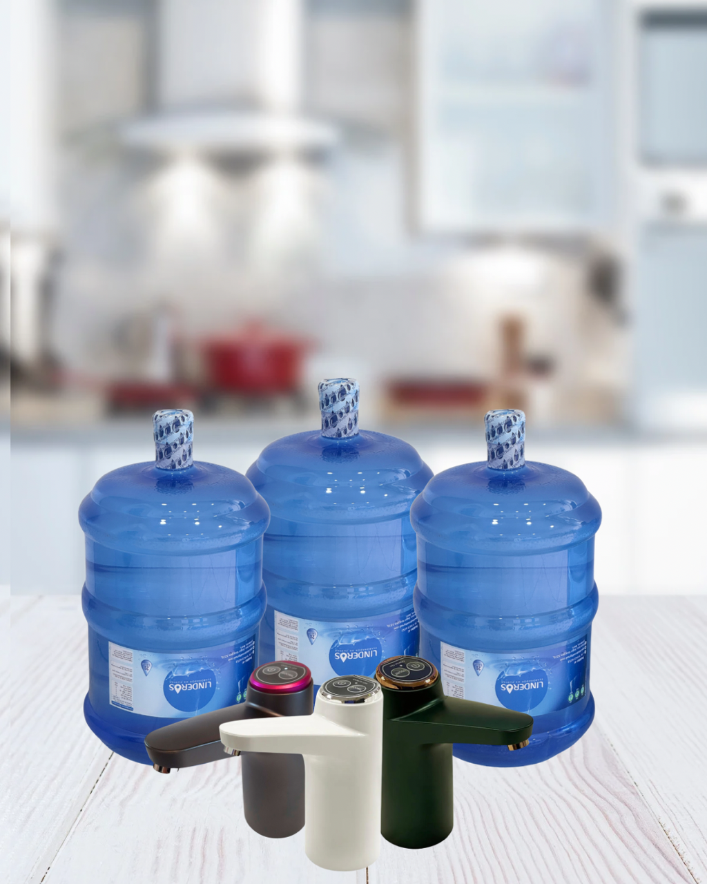Pack inicial Delux que incluye 3 bidones (3 envases de 20 litros)+ 3 recargas de 20 lts (total 60 lts) + 1 dispensador de agua Delux.