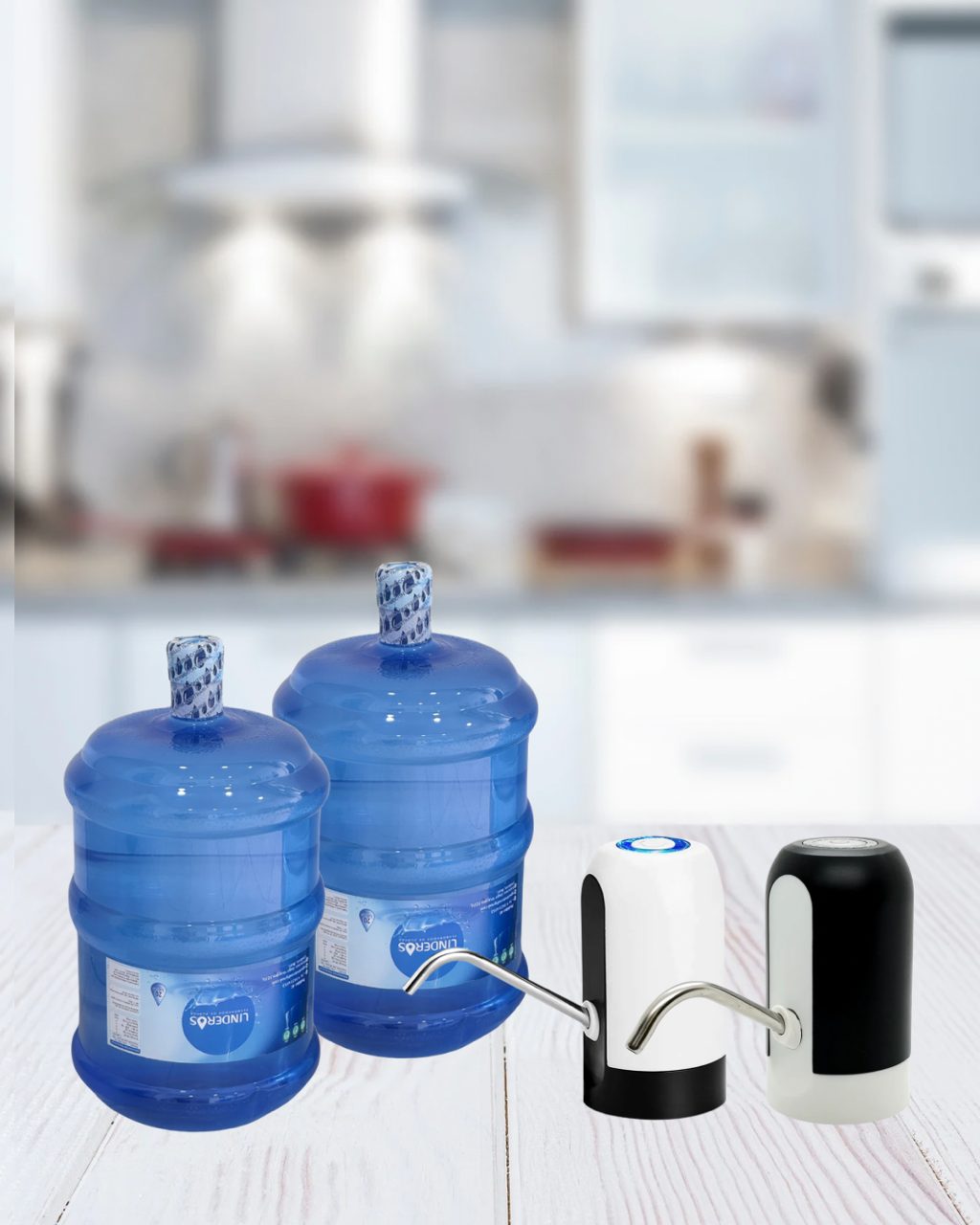 Pack inicial USB que incluye 2 bidones (2 envases de 20 litros)+ 2 recargas de 20 lts (total 40 lts) +1 dispensador de agua USB.